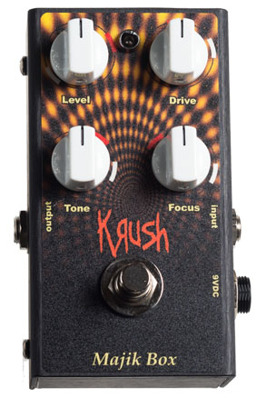 You don't have to be a Korn fan to appreciate the range of applications that the Krush Distortion is built for. This pedal allows you to dial in a heavy, focused distortion out of just about any amp, for nearly any type of hard rock or metal situation. Of course, using Munky's suggested settings make dialing in the signature Korn tone a breeze. Also, the lo-fi distortion setting that Munky suggests provides a unique alternative sound that Munky himself uses every night on the road.